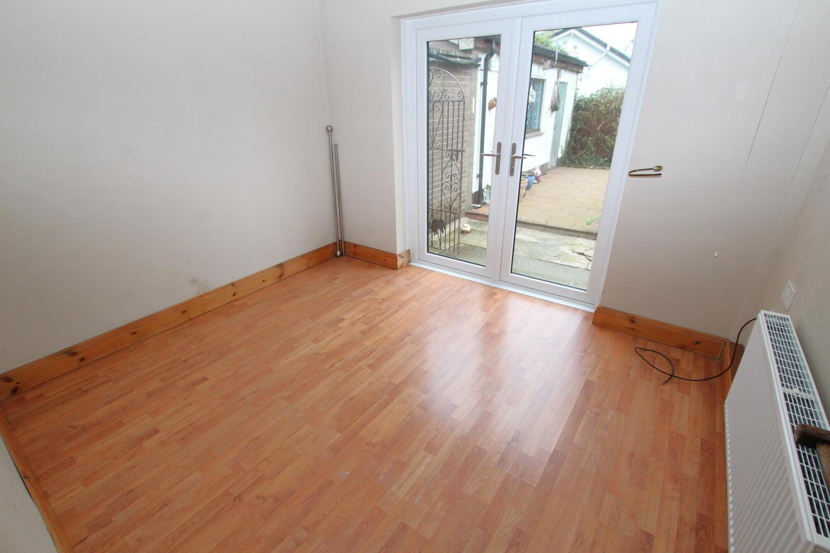 Laminate wood flooring.  PVC patio doors to rear garden.  Ceiling rose.  Radiator.