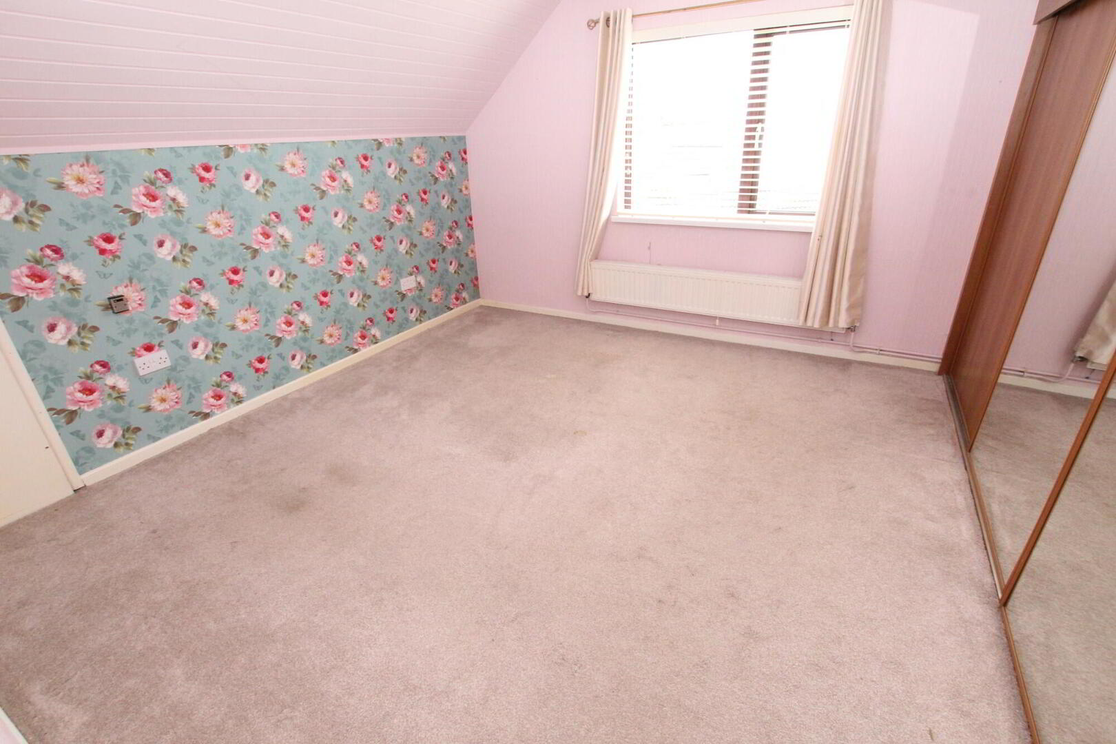 Built in slide robes with mirrored door.  Pine tongue and groove ceiling.  Radiator.