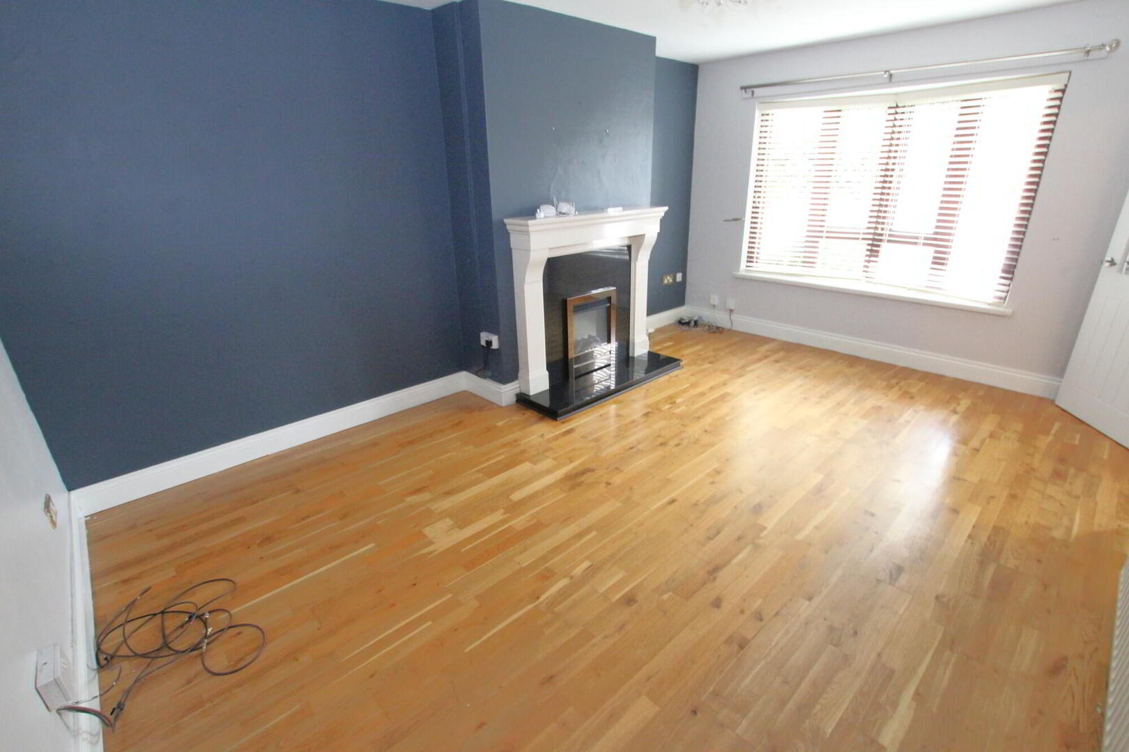 Feature fireplace with electric fire, granite hearth and inset.  Laminate wood flooring.  Ceiling rose.  Radiator.
