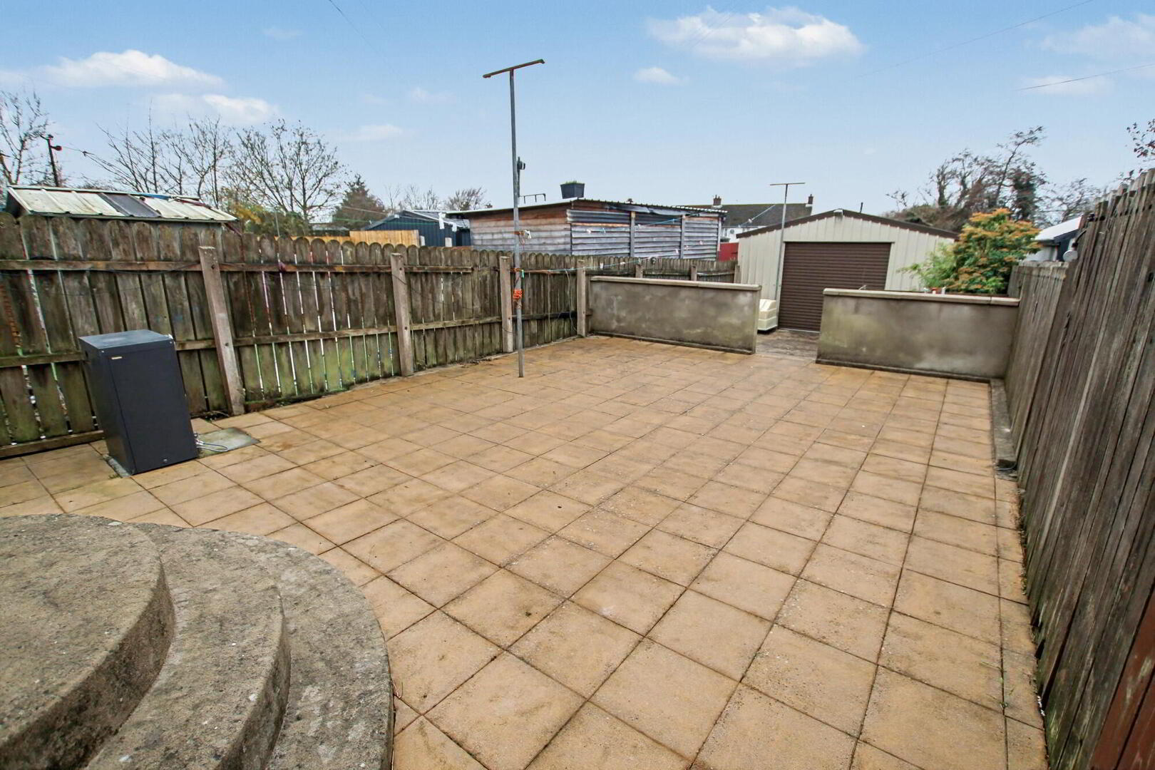 • Front Garden in lawn. Rear with paved patio and concrete area and detached garage.