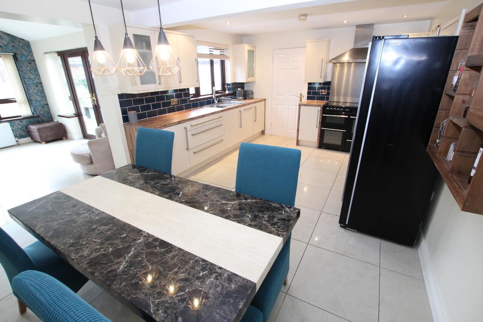 High gloss fitted Kitchen with dining area and separate Utility room.