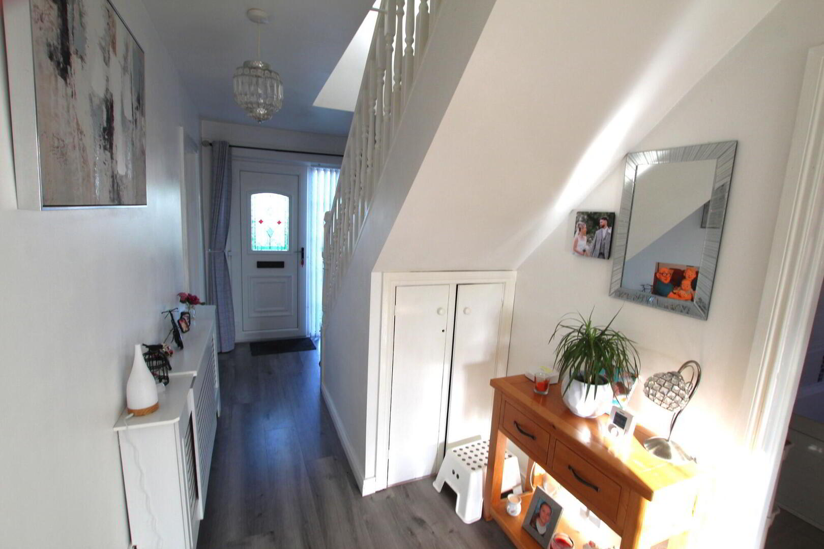 A deceptively spacious four-bedroom semi-detached chalet-style bungalow with detached garage, situated in this much sought after and well-established development. The property enjoys a highly convenient location close to Tesco, Main Street shops and public transport services.