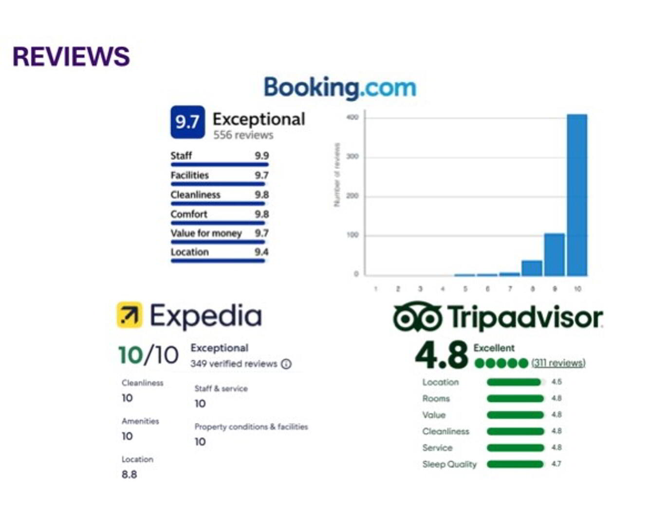 • Over 1,200 exceptional reviews on all major online reservation platforms