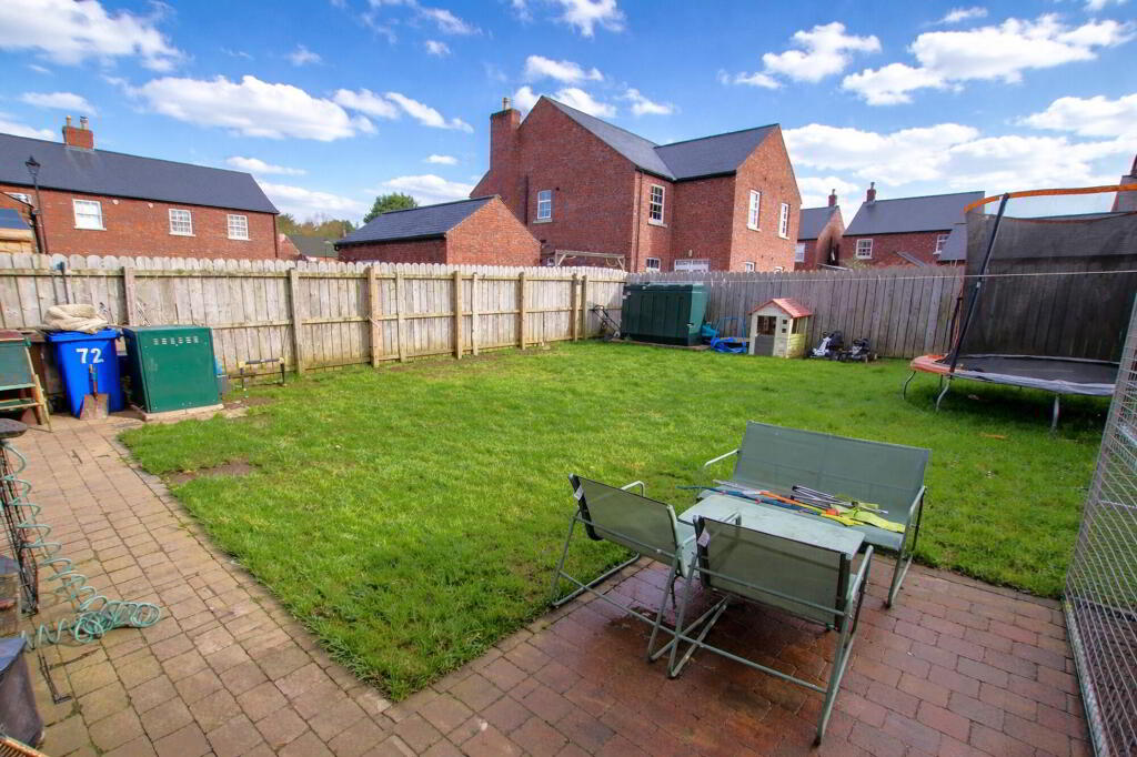 Enclosed rear garden in lawn. Paviour brick patio area. Oil tank. Heating boiler. Water tap.